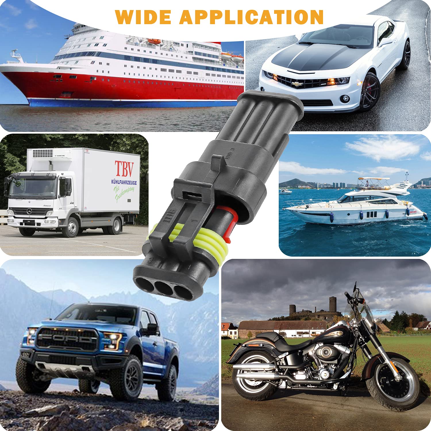 3 Pin Connector, 20-16 AWG Waterproof Electrical Automotive Wire Connector, 1.5mm Series Terminals Male Female Car Connectors Plug Sets
