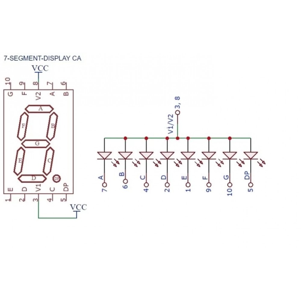 7 Segment LED Display – RED – SUN056CA – Common Anode – 14mm (0.56 Inch)