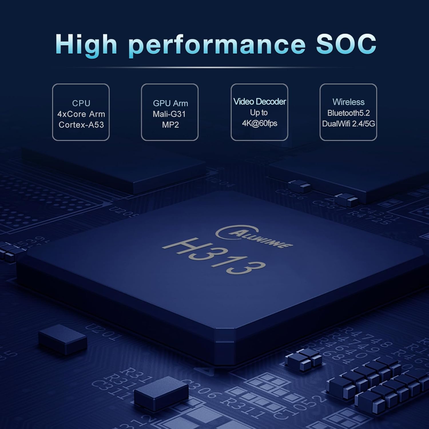 Chipset: H313 Quad-Core 64bit Cortex-A53