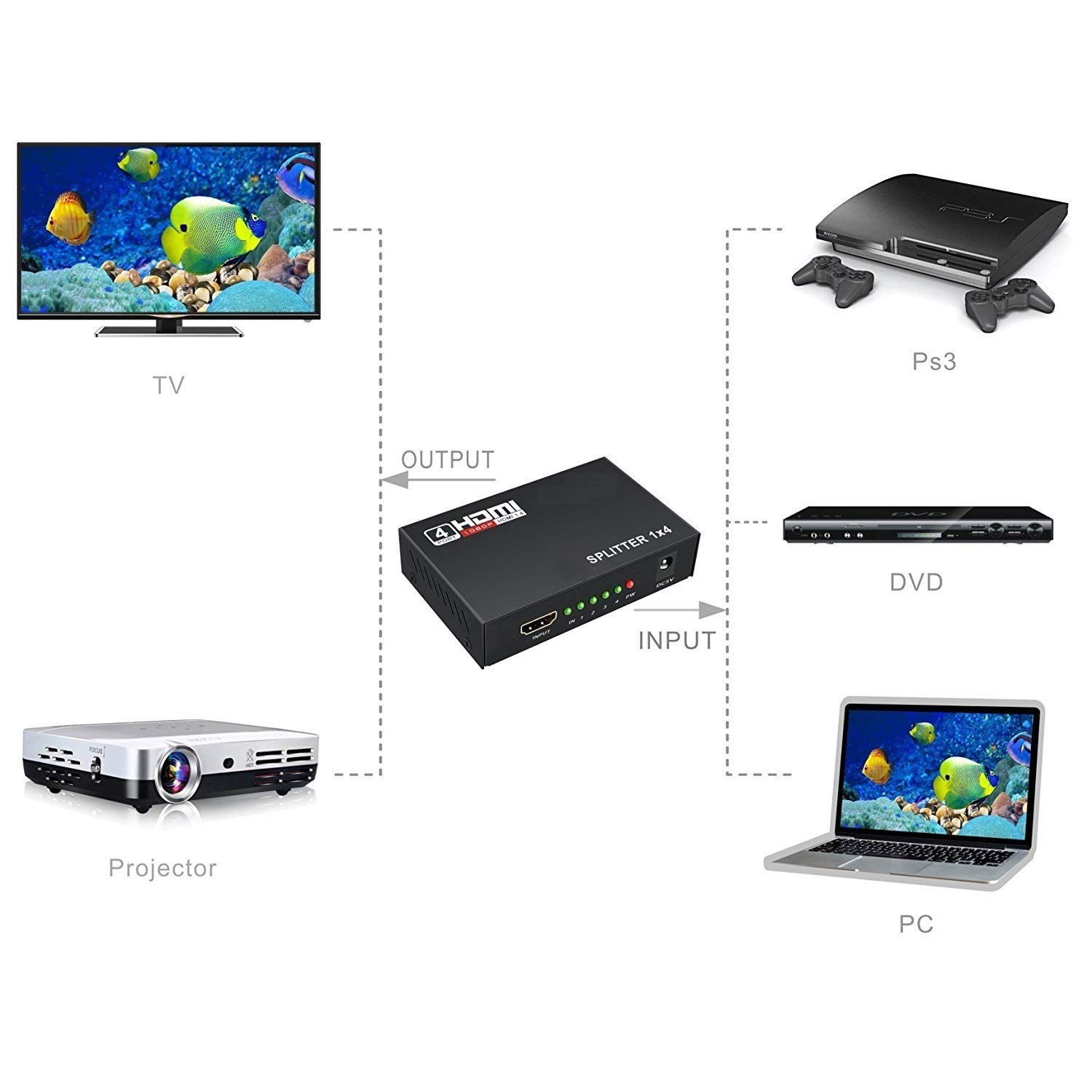 - Compact mini design, splits hdmi into four displays, supports 3d and hdcp pass-through